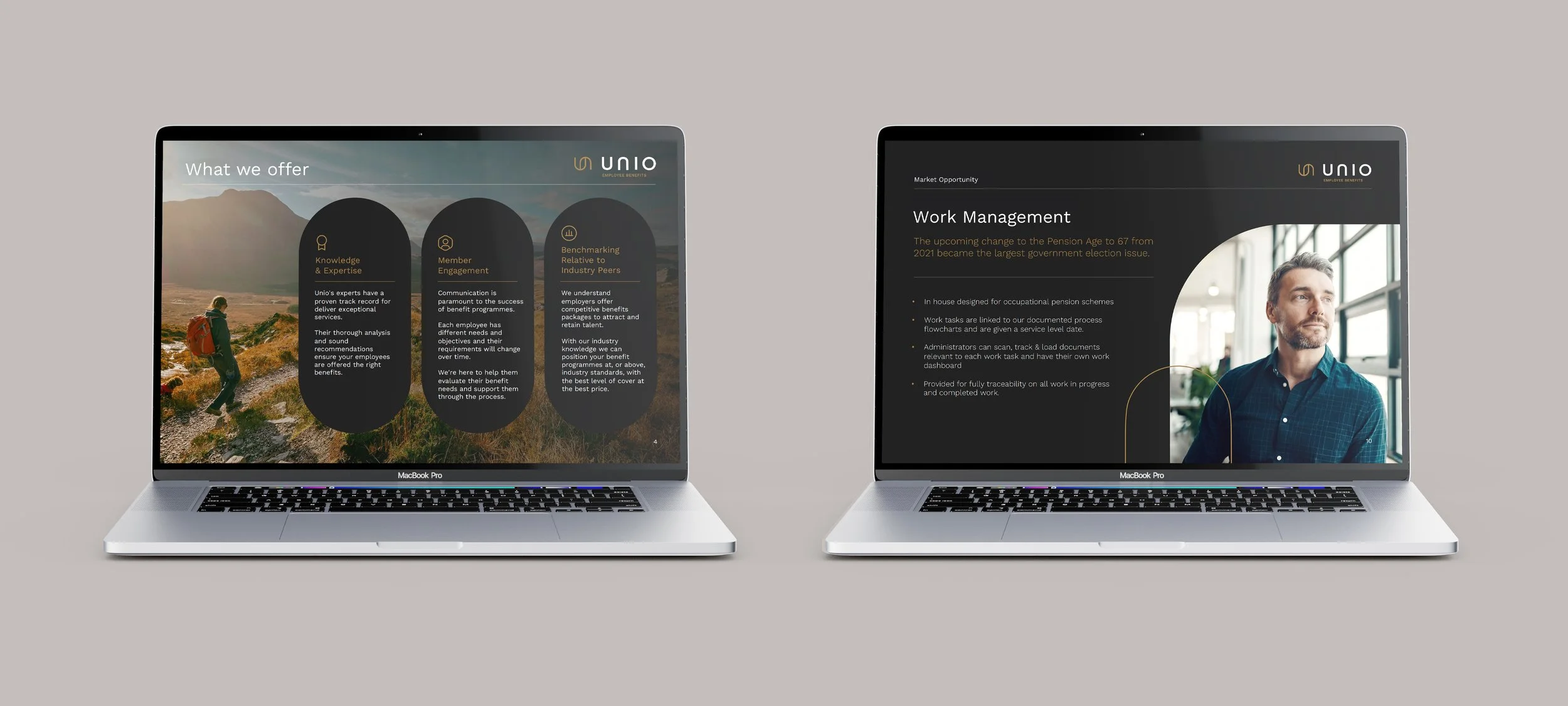 Prior to Unio's launch onto the Irish market, they approached us for help in refining their new branding for their subsidiary brands, Wealth Management and Employee Benefits. Working closely with their team, I made changes to the wordmarks’ sizing, font weight and colour, ensuring that they would be legible at all sizes, especially when used digitally.