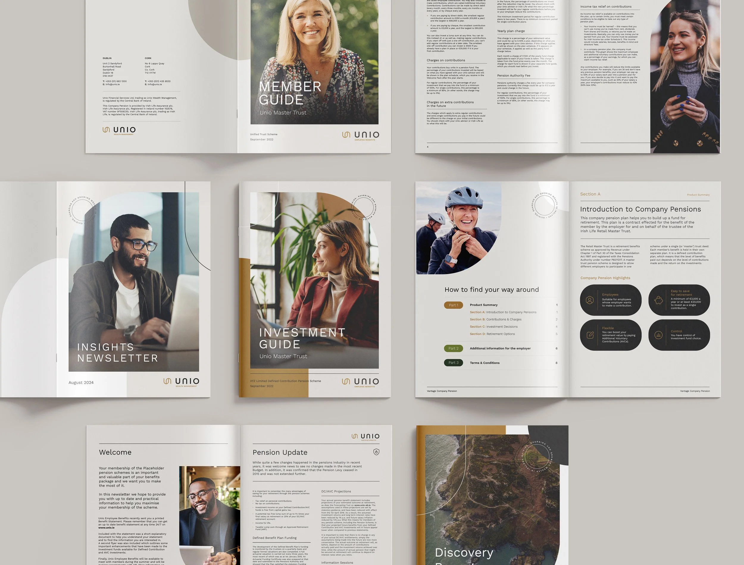 I worked on a number of print and digital projects for Unio over the years, including brochures detailing their pension and fund products, technical internal reports, presentations, ads and motion graphics.